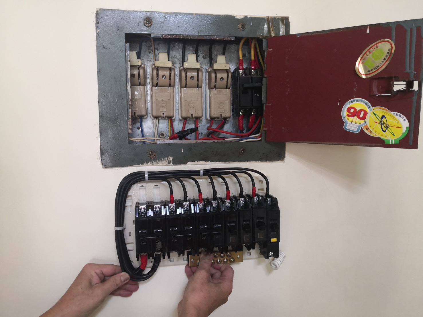 更換新配電箱:安裝符合現行標準的配電箱,並配置適當的過載保護開關(MCB)、漏電斷路器(ELCB),提升安全性。