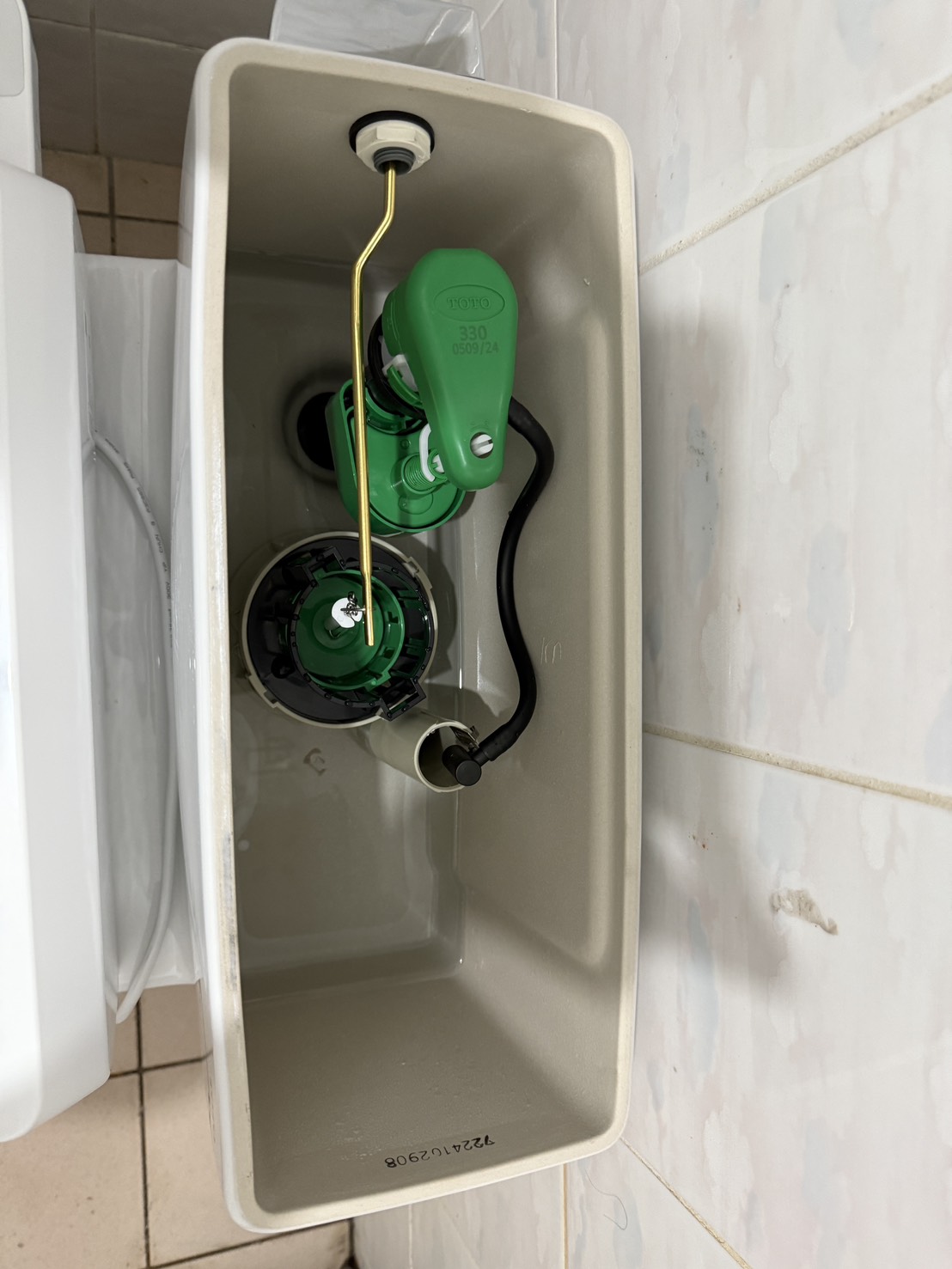 安裝新馬桶時,先裝設法蘭圈(若有),對準排水管口固定底座,再依序安裝水箱配件、水箱並連接給水管。完成後,開啟水源檢查是否漏水,並測試沖水功能。最後安裝馬桶蓋,並使用矽利康填補馬桶底座與地面間的縫隙。留意是否有特殊的社區規定或老舊管線問題